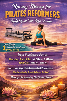 With the support of her yoga community, Aubin is hosting a special event and auction to help raise funds, while also seeking additional support. Contributions of any size will help bring Pilates to the studio and support its continued growth.