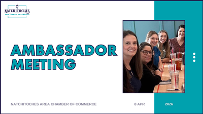 The Chamber Ambassador Program is group of engaged professionals who serve as the heart of the Natchitoches Area Chamber of Commerce. Ambassadors help strengthen relationships across the local business community, welcome new and prospective members, and support the Chamber’s mission through meaningful engagement and service.