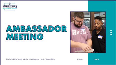 The Chamber Ambassador Program is group of engaged professionals who serve as the heart of the Natchitoches Area Chamber of Commerce. Ambassadors help strengthen relationships across the local business community, welcome new and prospective members, and support the Chamber’s mission through meaningful engagement and service.