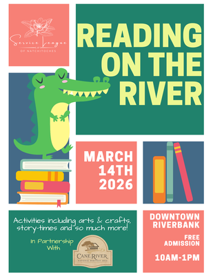 Bring the whole family out for a fun-filled morning at Reading on the River, hosted by the Service League of Natchitoches! This free community event promotes literacy with interactive reading stations, book giveaways, crafts, and appearances from beloved storybook characters. Set along the scenic Natchitoches Riverbank, it's the perfect way to inspire a love of reading in children of all ages.
