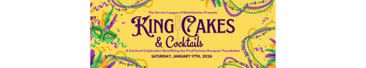 Laissez les bon temps rouler with the Service League of Natchitoches at King Cakes & Cocktails! Celebrate the spirit of Mardi Gras with delicious king cake tastings, festive cocktails, and a lively evening at the historic Prud'homme-Roquier House. Enjoy music, dancing, and a joyful atmosphere perfect for kicking off Carnival season in style!