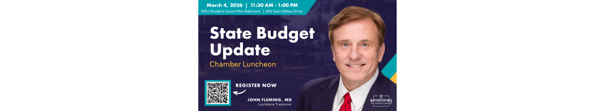 Join the Natchitoches Area Chamber of Commerce for a special State Budget & Treasury Update, presented by the Natchitoches Parish Journal, featuring John Fleming, MD Louisiana State Treasurer.